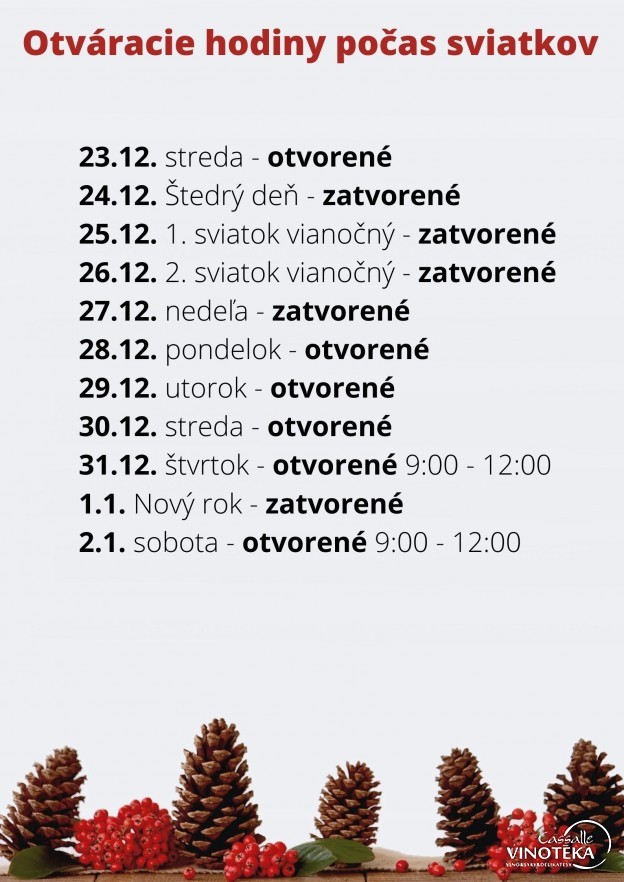 Milí zákazníci, počas sviatkov Vás radi obslúžime podľa nasledujúcich otváracích hodín :)